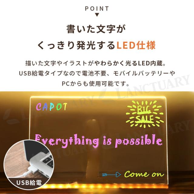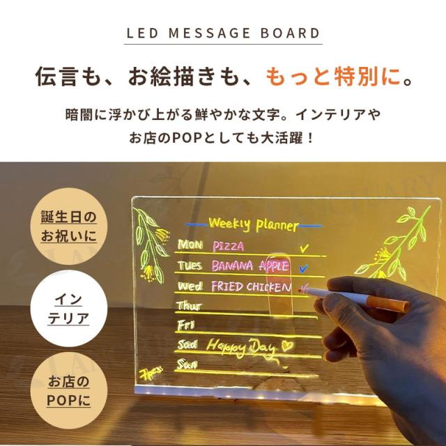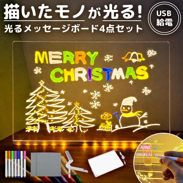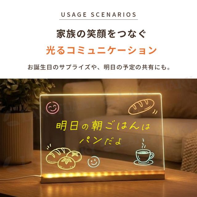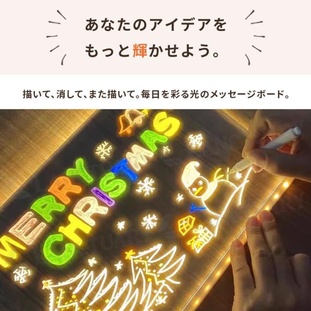 LEDメッセージボード ペン付き お絵描きボード 光る 看板 メモボード 卓上 デスクトップ 透明 アクリル おしゃれ 伝言板 カフェ メニュー表 インテリア 子供 知育 玩具 練習 クリスマス プレゼント 誕生日 ギフト パーティー 飾り 演出 夜間 ライト