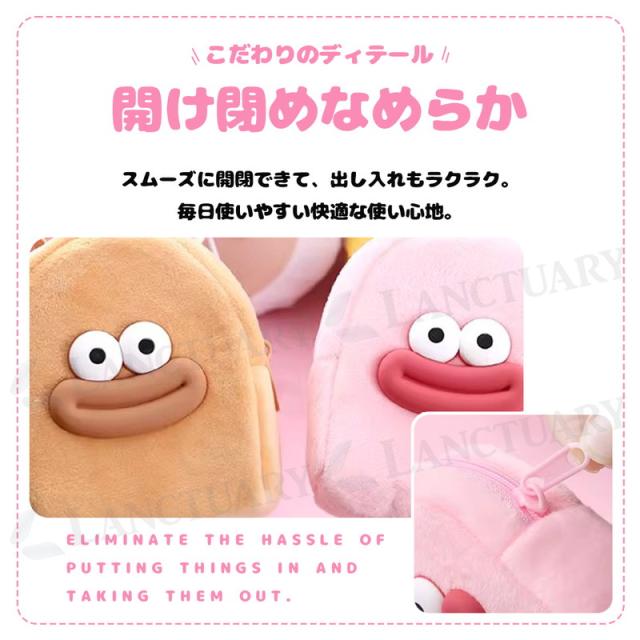 バッグの中の整理整頓が、今日から楽しい癒やしの時間に変わります。こちらのモンスターミニポーチは、愛くるしい表情とぷっくりした唇が視線を釘付けにする、ユニークな癒やし系ポーチです。上質なぬいぐるみのような柔らかい起毛素材を使用しているため、触るたびに心が穏やかになる極上の質感に仕上がりました。