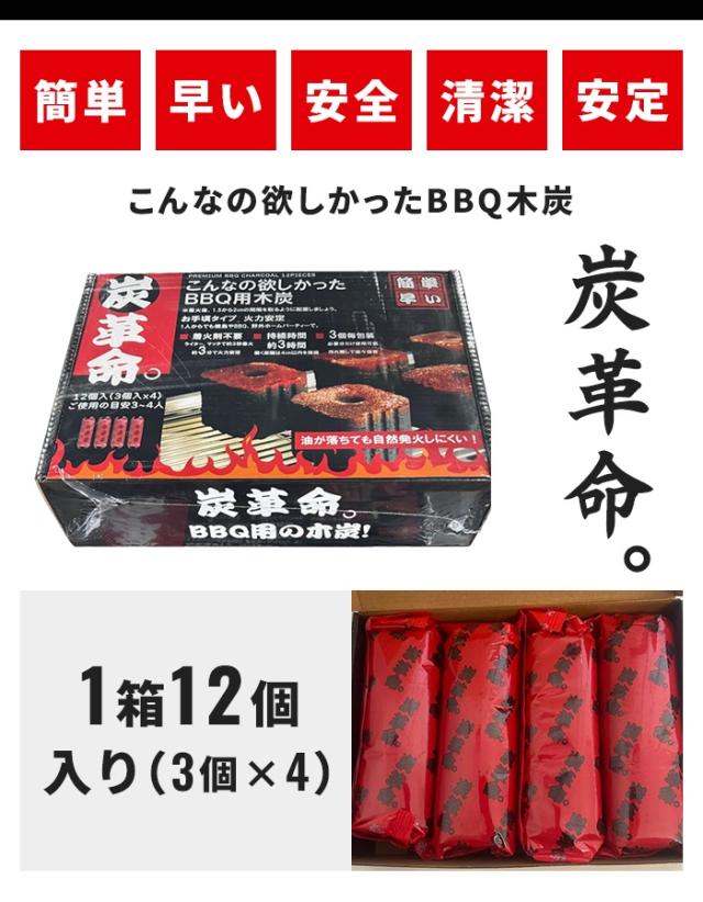 着火炭 木炭 バーベキュー用 12個入(3個×4袋) 単品 1箱 着火剤不要 簡単着火 約3時間燃焼 炭 燃料 スピード着火 固形燃料 BBQ用炭 防災用 キャンプ バーベキュー 七輪 焼肉 焼き鳥 コンパクト 小分け 炭 アウトドア用品 非常用