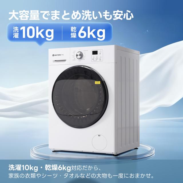 OSJ ドラム式洗濯乾燥機 家庭用 洗濯容量10kg ?燥容量6kg 自動乾燥 温度調節 温水洗浄 トリプル自動投入 除湿 高温除菌 衣類 乾燥 1人暮らし 1人用 2人用 3人用 4人用 ドラム式 布団乾燥 湿気対策 梅雨 カビ対策 花粉 洋服 やさしく乾燥 おしゃれ