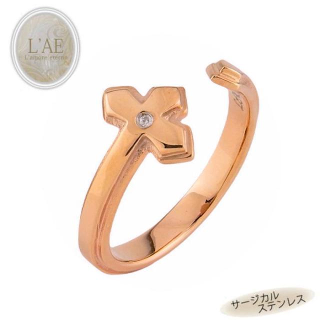 リング 指輪 刻印 名入れ アイアンクロス ジルコニア 金属アレルギー対応 アクセサリー ローズゴールド ピンク レディース 錆びない アクセサリー ジュエリー プレゼント ギフト 誕生日 記念日