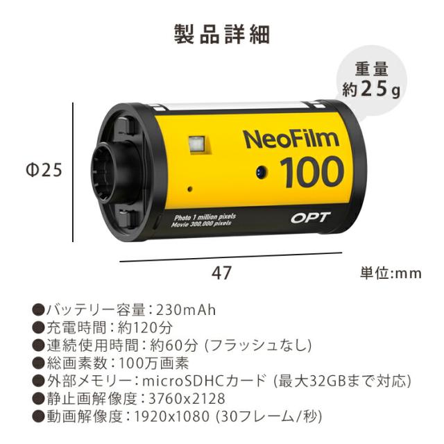 OPT100 Neo Film|フィルム型カメラ デジタルカメラ トイカメラ ミニカメラ 超小型カメラ 100万画素 コンパクトカメラ クラシックカメラ レトロカメラ 写真 動画 画像 ムービー インスタント 昔ながら ガジェット【送料無料(小型宅配便)】