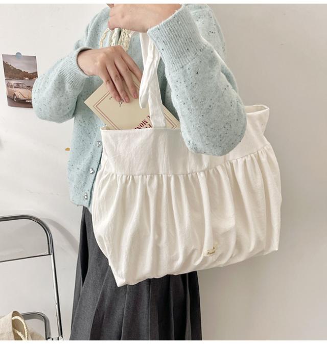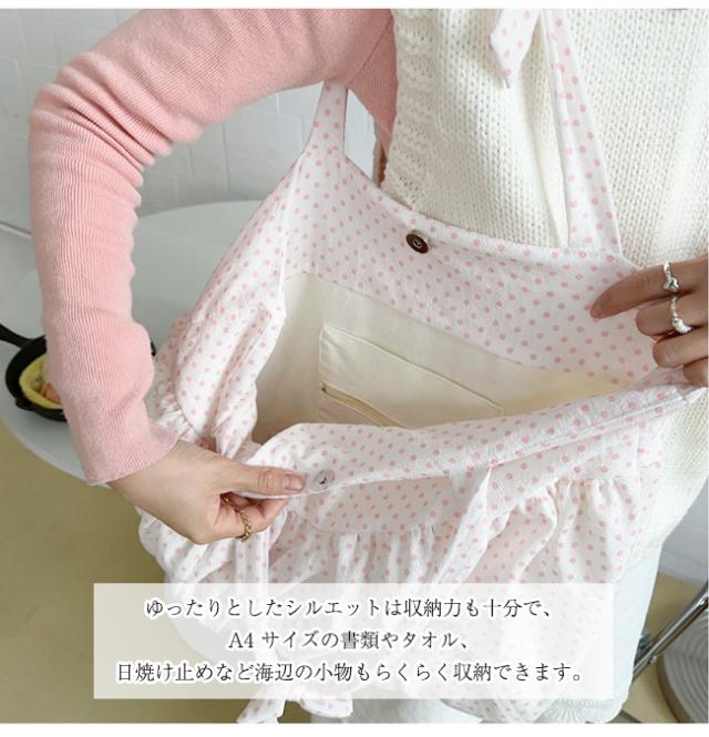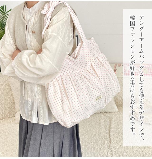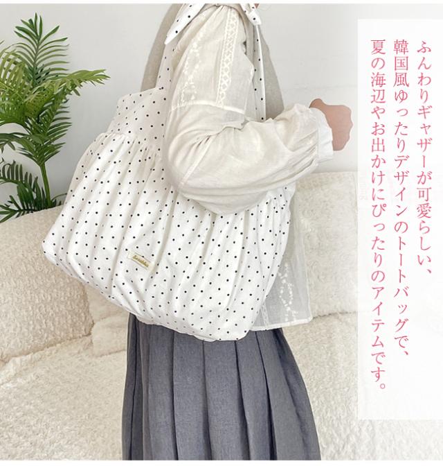 ふんわりギャザーが可愛らしい、韓国風ゆったりデザインのトートバッグで、夏の海辺やお出かけにぴったりのアイテムです。