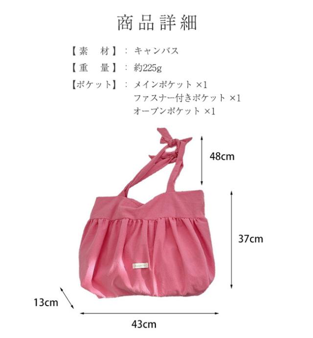 ショルダーバッグ トートバッグ レディース 軽量 A4 収納可 バッグ海 夏 海辺 韓国風 ゆったり 大容量 ギャザー リボン結び キャンバス アンダーアームバッグ 通勤 お出かけ 旅行