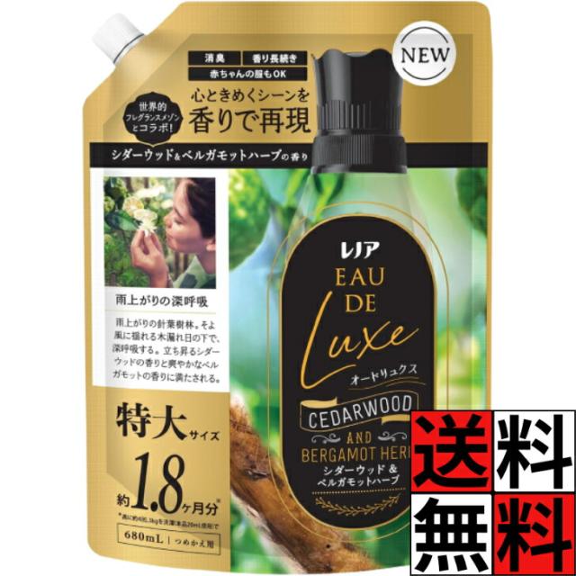 送料無料 レノア オードリュクス 柔軟剤 シダーウッド ベルガモットハーブ 香り 詰め替え 大容量 特大 消臭 長続き 赤ちゃん ベビー 上品 洗濯 洗う キレイ 680mL