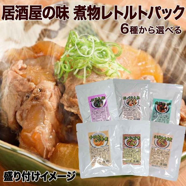 居酒屋 煮物 6種から選べる 送料無料 レトルト 惣菜 常温保存 和食 おかず おつまみ ぶり大根 豚バラ大根 肉じゃが 鯖味噌 里芋いか煮 手羽先ピリ辛