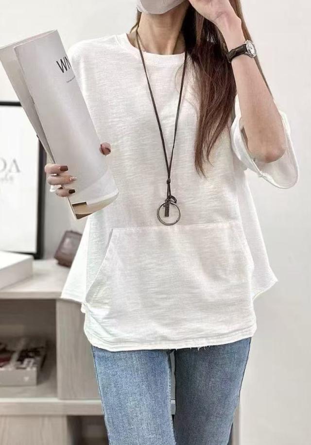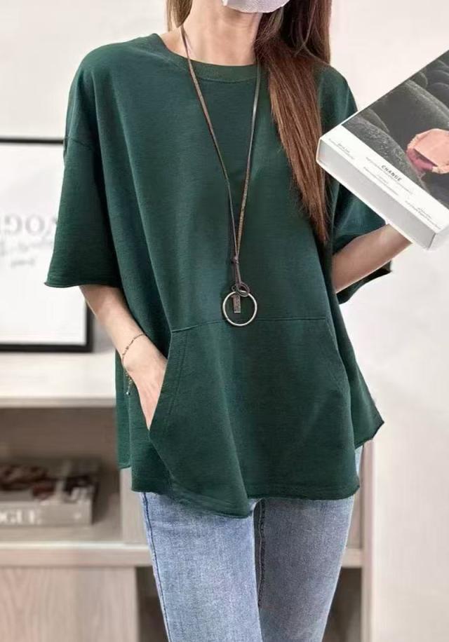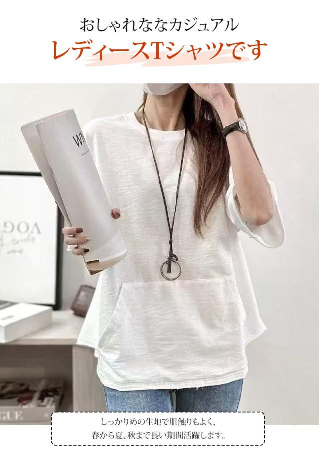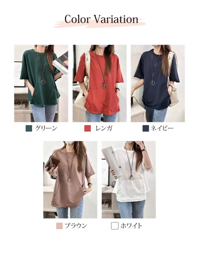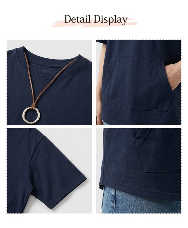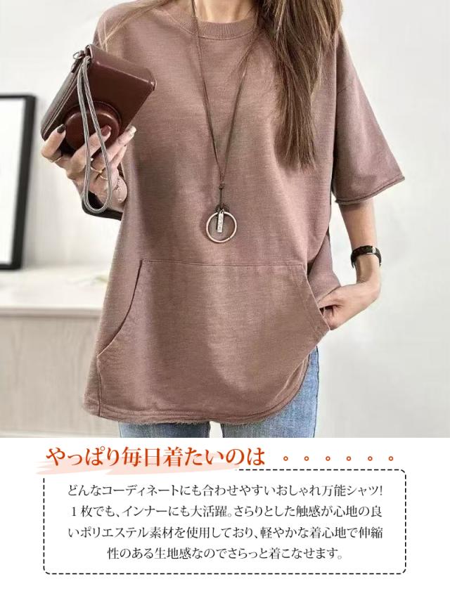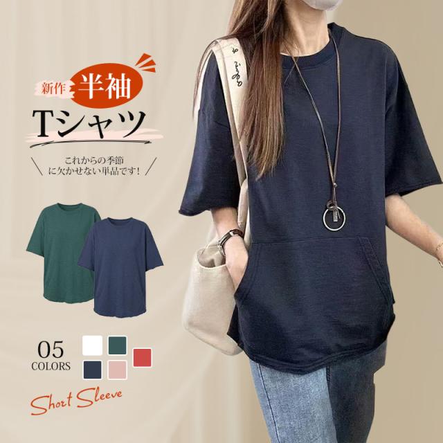 夏新作 半袖tシャツ レディース Tシャツ 半袖 トップス 綿 ポケット付き カジュアル 通気性 快適 お洒落 体型カバー