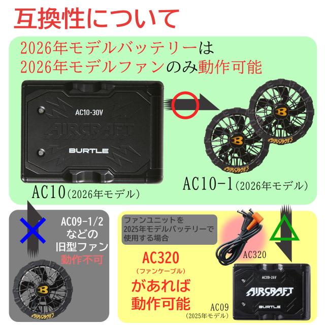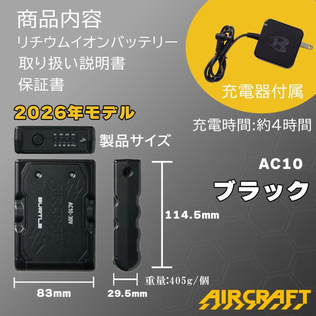 4月1日より販売開始 2026年モデル AC10 エアークラフト専用30Vバッテリー 空調服用バッテリー マットブラック 2026最新モデル 春夏用 m3-ac10 バートル