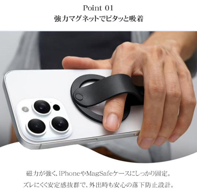 スマホリング MagSafe対応 マグネット式 iPhone用 強力 バンド付き 薄型 軽量 落下防止 スマホスタンド 角度調整 片手操作 スマホ iphone かわいい おしゃれ