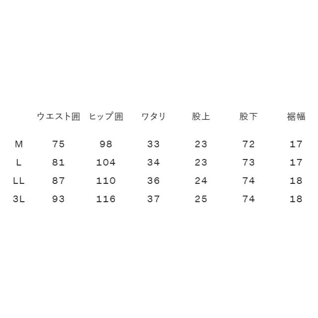 股下丈はM-72cm/L-73cm/LL.3L-74cmの設定となっております。