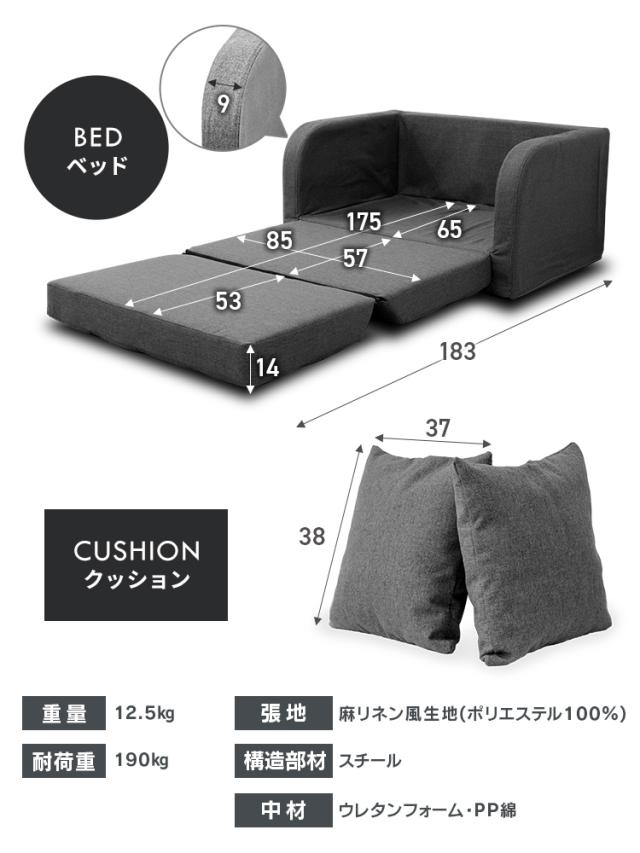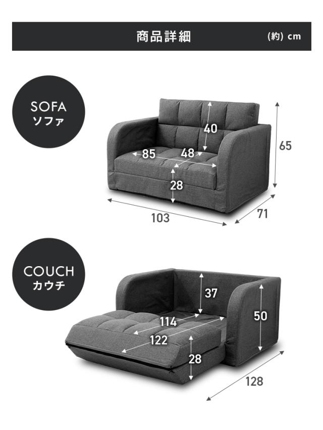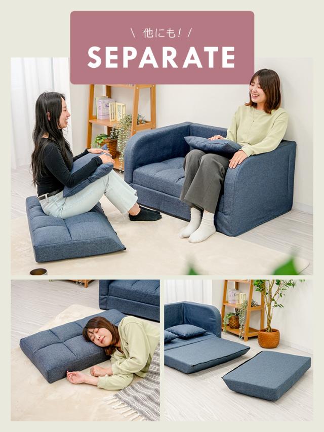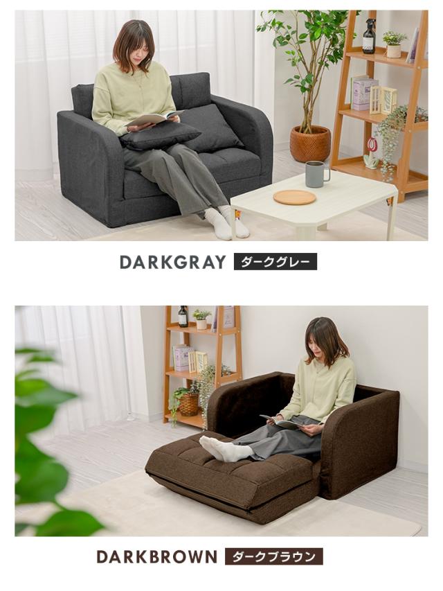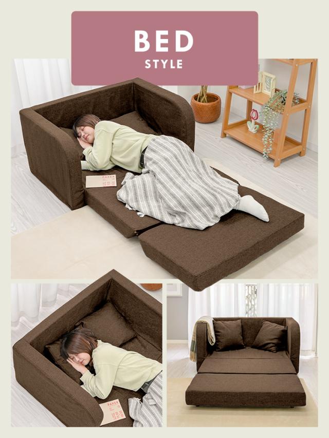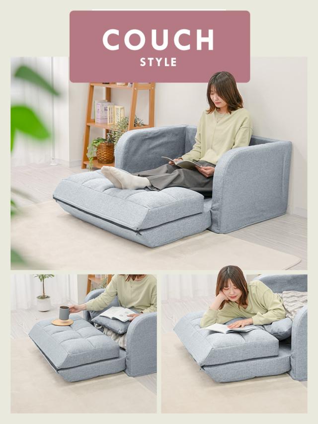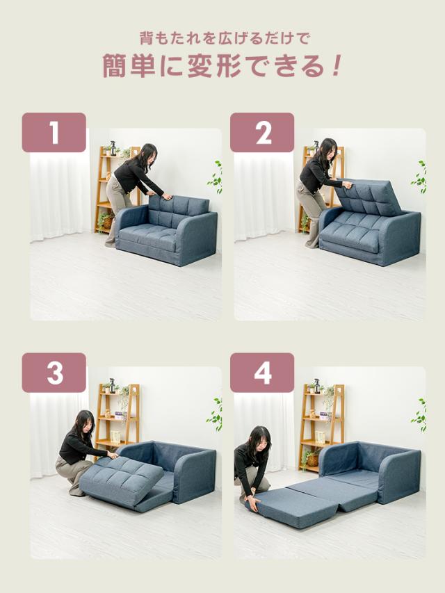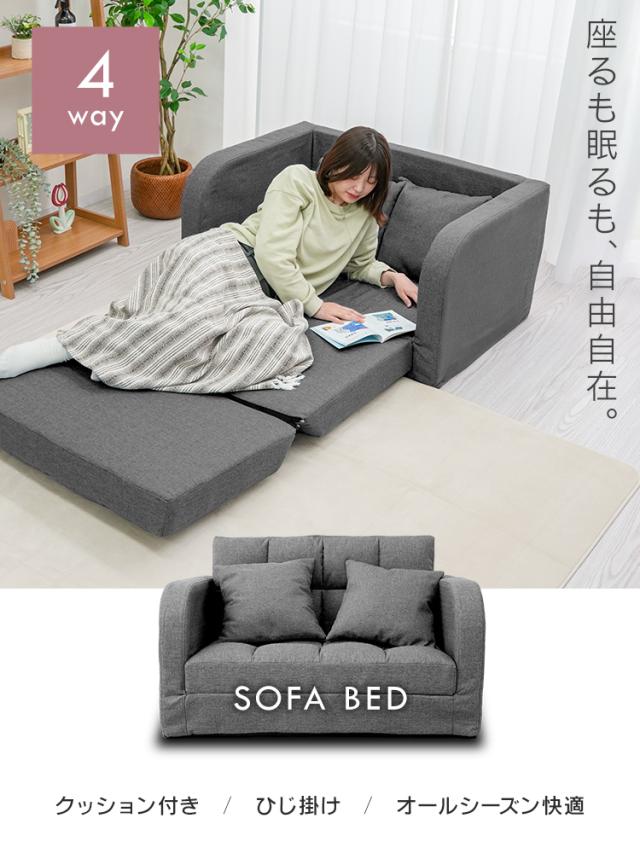 ソファー 2人掛け ソファーベッド 4way 幅103cm 肘掛け クッション付き ベッド カウチ コンパクト ソファ ローソファー フロアソファ ファブリック 麻リネン風 ソファベッド 折りたたみ おしゃれ 1人 座椅子 新生活 送料無料