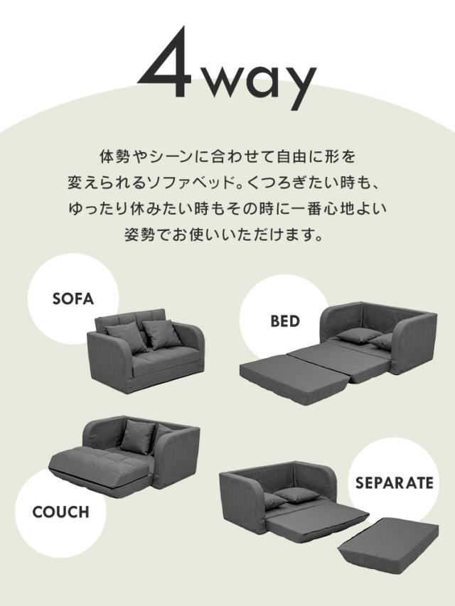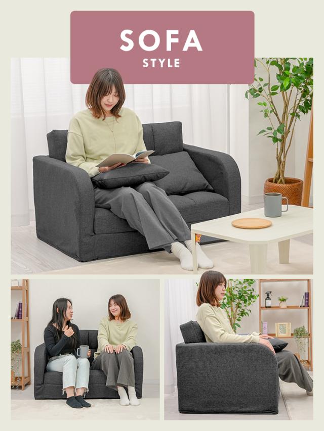 肘掛け付きでくつろぎやすい4WAYソファベッドです。