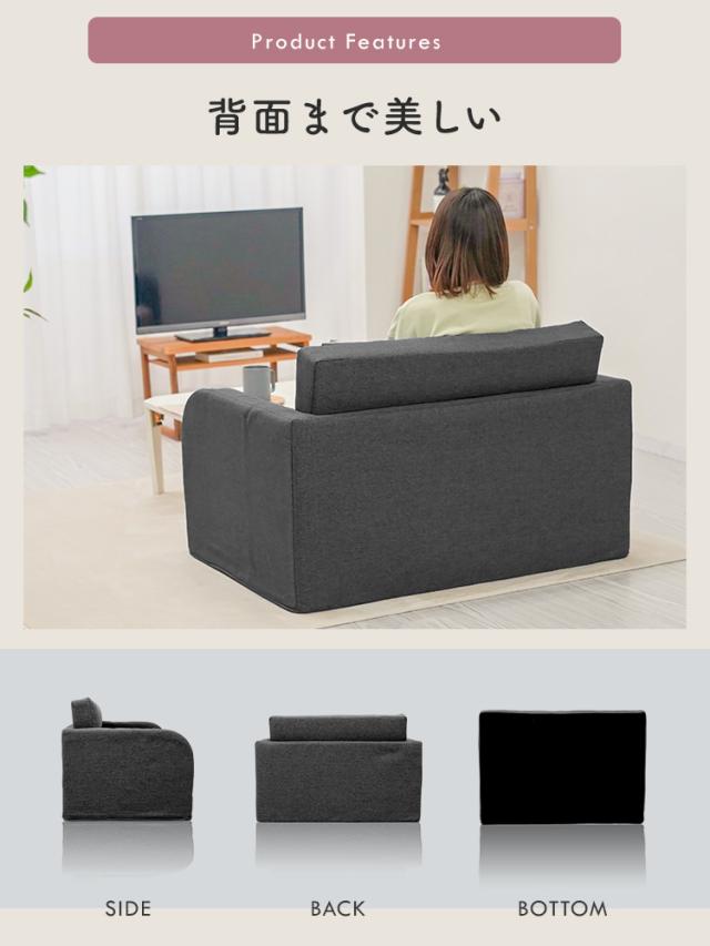 普段はソファとして、映画鑑賞時はカウチスタイル、来客時にはベッドとして活躍します。