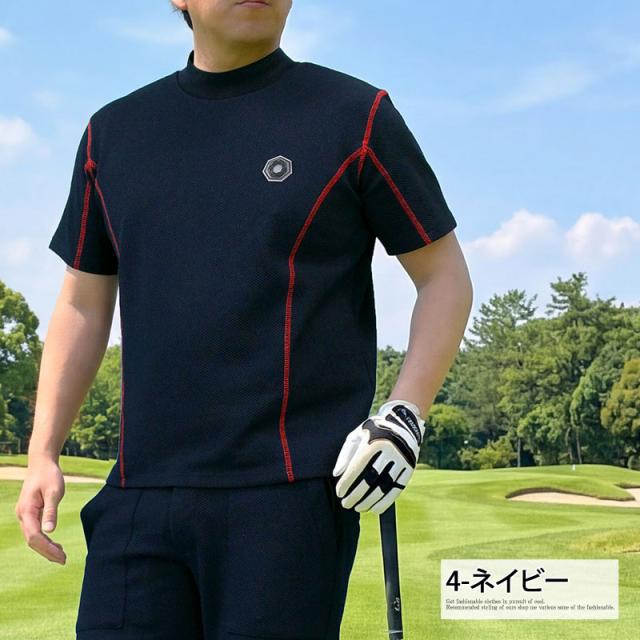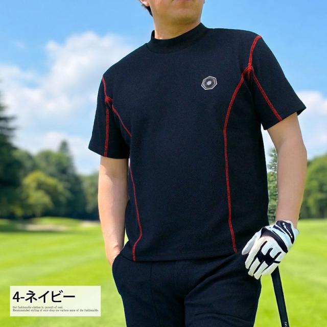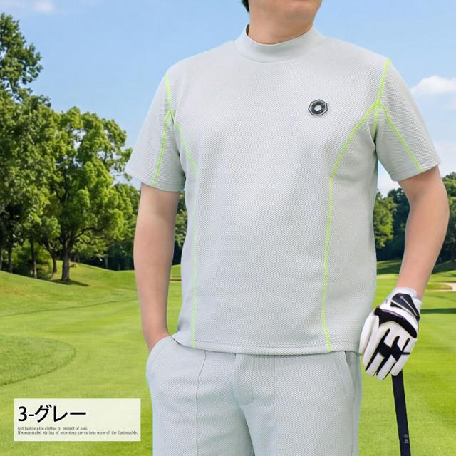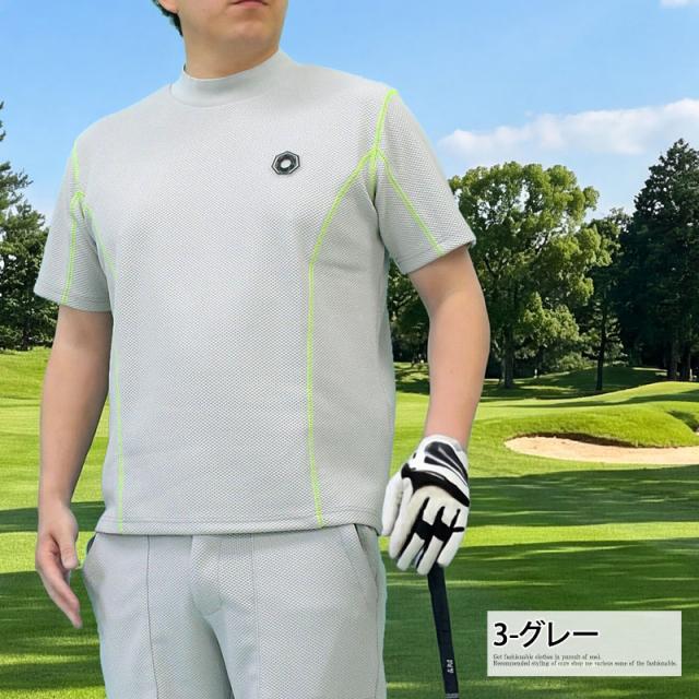 送料無料 ゴルフウェア モックネックシャツ メンズ GIORNO SEVEN ジョルノセブン ハイネック ゴルフ メッシュ編み ストレッチ 半袖トップス ポロシャツ 春夏 ゆうパケ