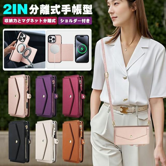 iphone17 eケース 手帳型 2in1 分離式 ショルダー付き iphone17 16 15 14 13 12 11 se 8 7 iphone 16promax ケース 手帳型 スマホケース iphone 16 iphone16 eケース アイフォン 15ケースiphone 14プロケース 車載ホルダー対応 カード収納 手帳型 大容量