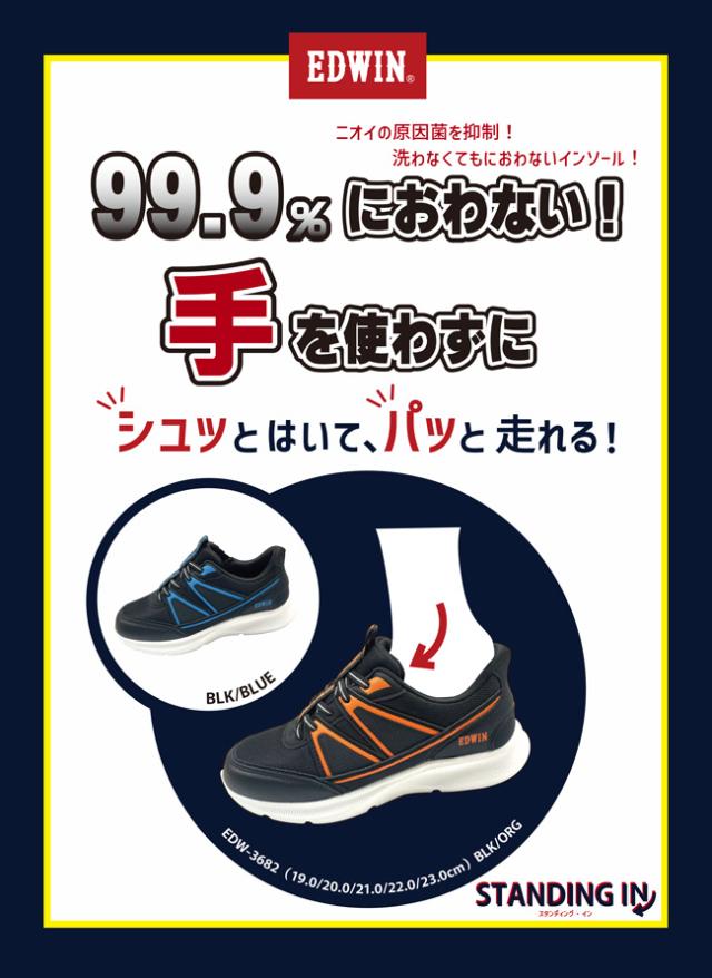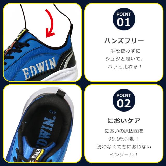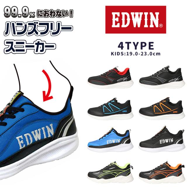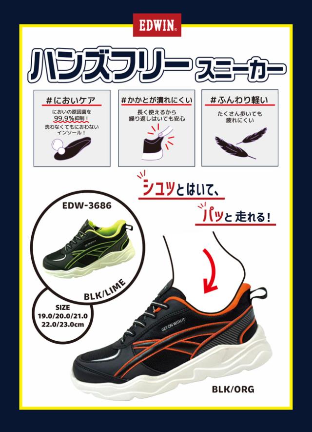 エドウィン ハンズフリーシューズ スニーカー スリッポン キッズ 手を使わずに履ける 履きやすい 歩きやすい 疲れにくい ゴム紐 軽量 防臭 おしゃれ かっこいい ジュニア ボーイズ 男の子 小学生 通学 子供靴 運動靴 シューズ 靴