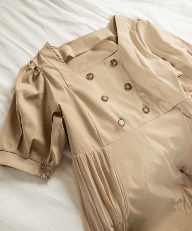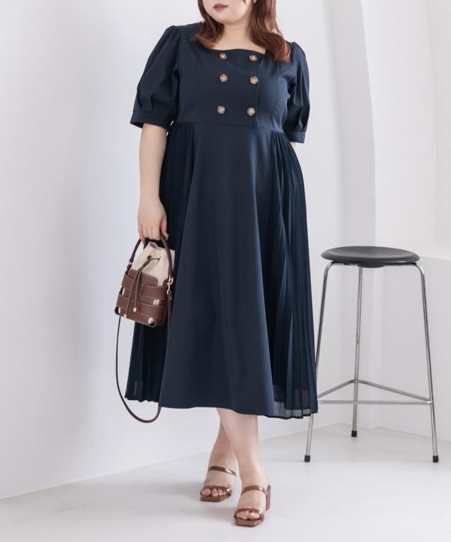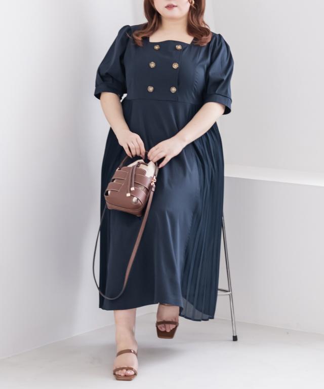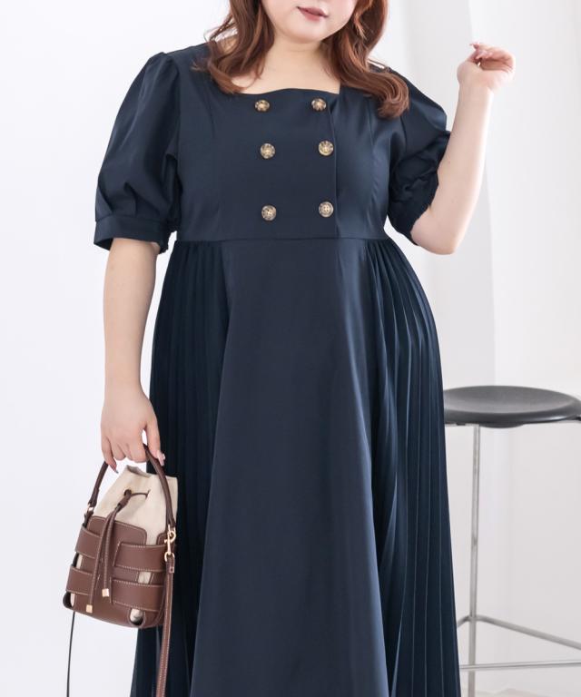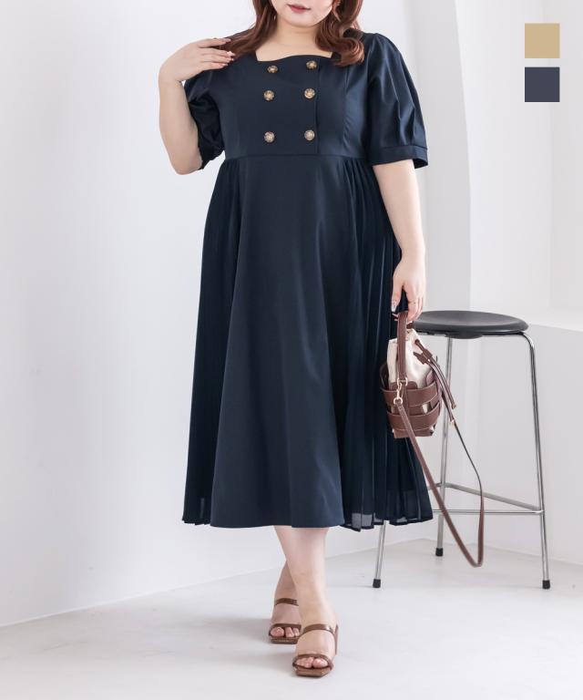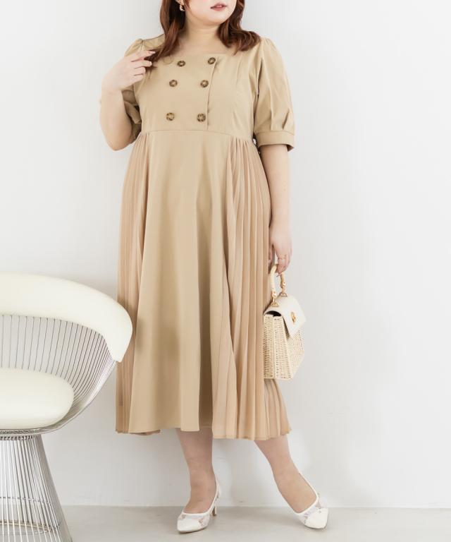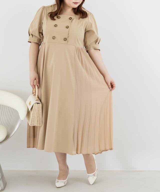 大きいサイズ/レディース/LL/3L/4L/CLETTEオリジナルトレンチ風サイドプリーツワンピース