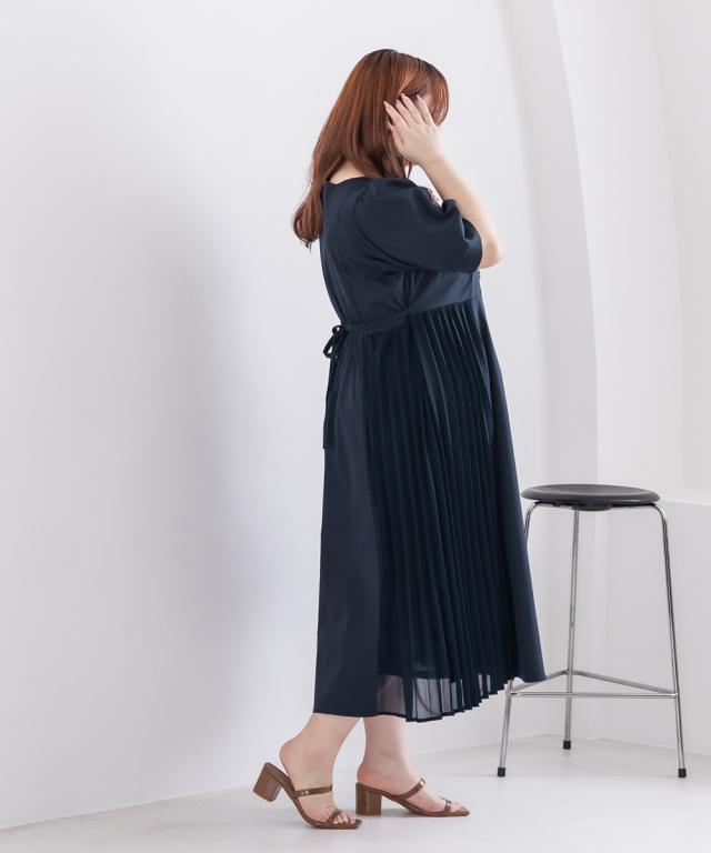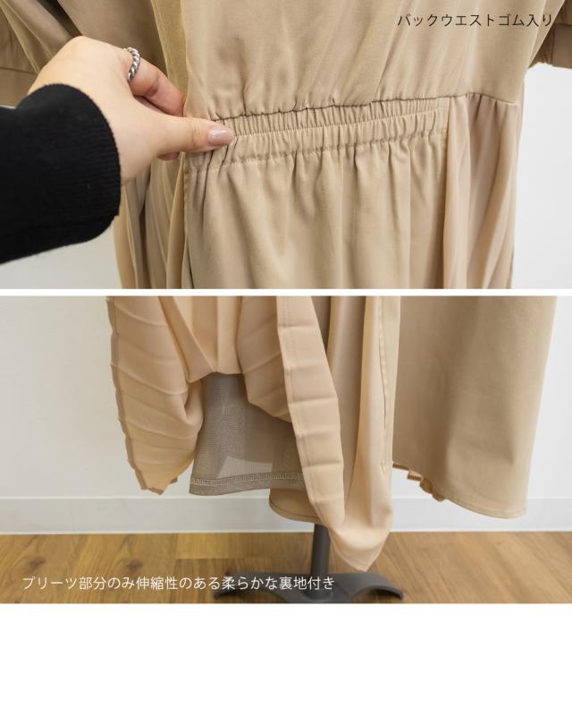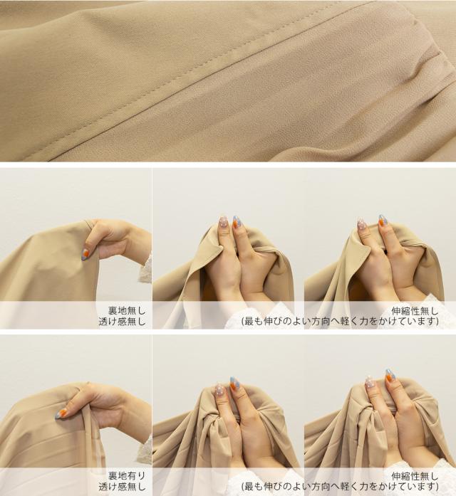| 落ち感のある布帛素材。プリーツ部分のみ透け感のあるシフォン素材。 ※プリーツ部分のみ伸縮性のある柔らかな裏地付き。 |