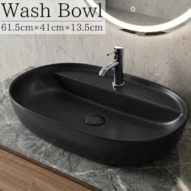 洗面ボウル おしゃれ 600×400mm デザインシンク 洗面台 置き型 トイレ 水周り ナチュラル DIY 家具 インテリア 手洗いボウル 手洗い鉢 陶器 豪華 排水ホース付き ブラック 黒 WB-57BK