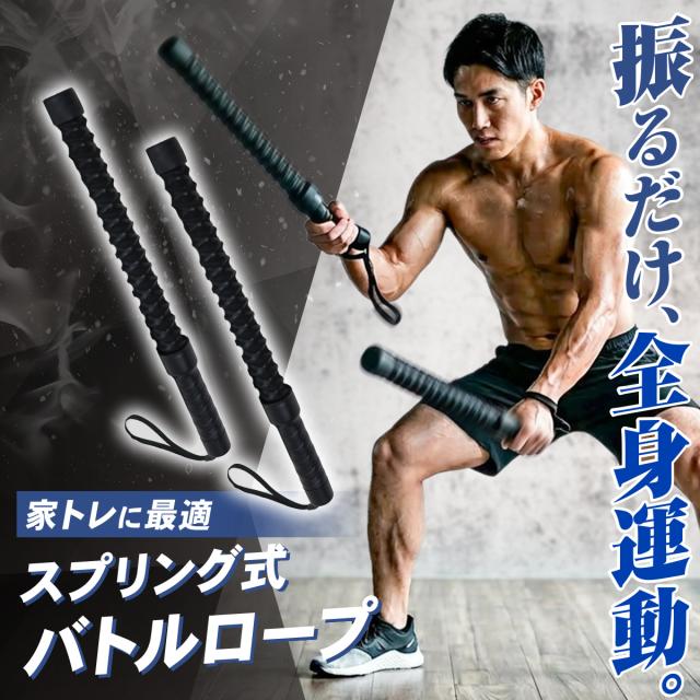 バトルロープ ロープレス コードレス トレーニング 筋トレ 極太 ジムロープ 体幹 高負荷 室内 ジム スプリング 全身運動 自宅トレ ハンドストラップ付き 2本セット