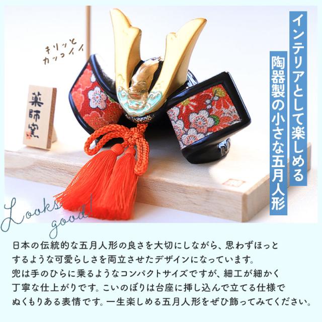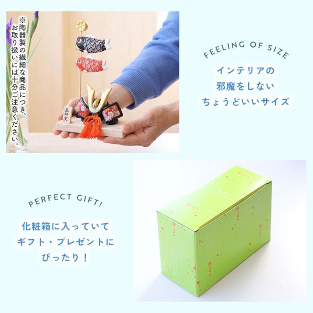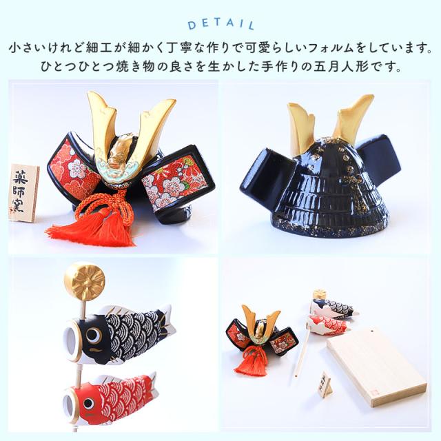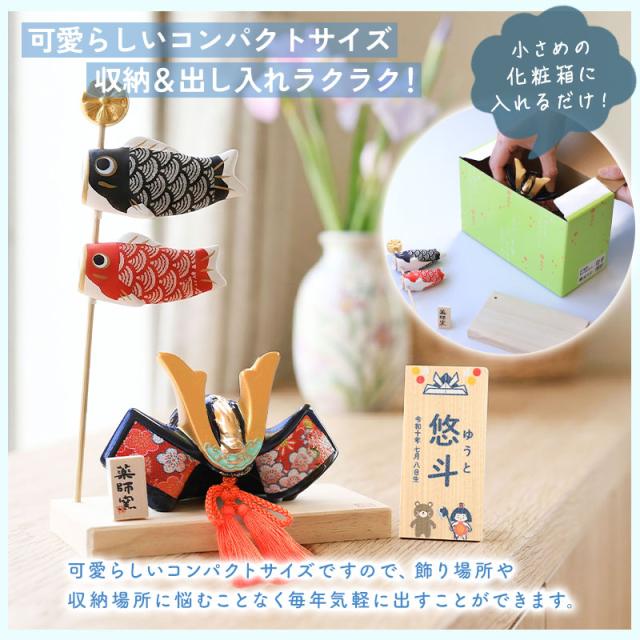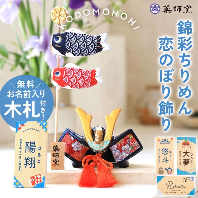 五月人形 コンパクト おしゃれ 名前 札 付き 兜 名入れ無料 こどもの日 錦彩ちりめん恋のぼり飾り 薬師窯 兜飾り こいのぼり かっこいい 端午の節句 陶器 小さめ ミニ 子供の日 5月人形 名札 名前入り 名入れ 無料 最新 今どき 小さい 送料無料
