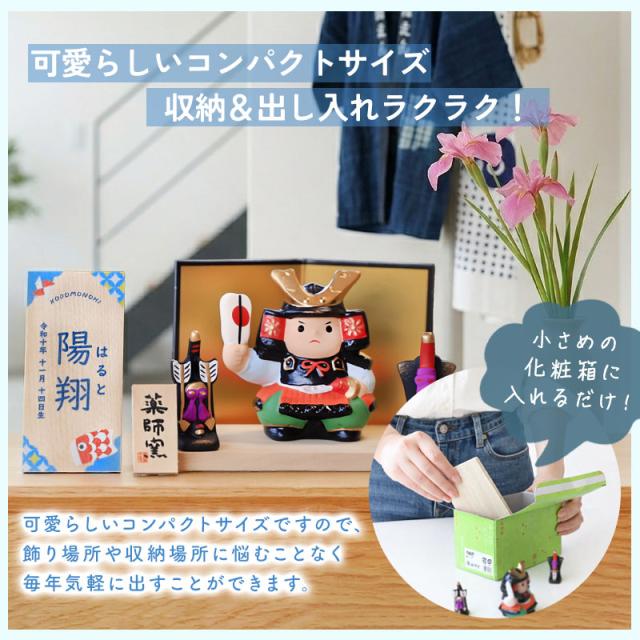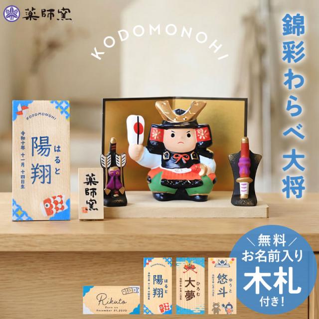 五月人形 コンパクト おしゃれ 名前 札 付き 錦彩わらべ大将 名入れ無料 こどもの日 若武者飾り 薬師窯 武者 男の子 兜 兜飾り かっこいい 端午の節句 陶器 小さめ ミニ 子供の日 5月人形 名札 名前入り 名入れ 今どき 送料無料