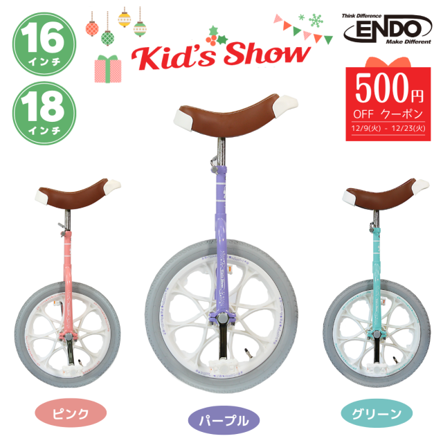 \500円OFF クーポン配布/ 12/23(火) 12:00まで 一輪車 16インチ 18インチ 小学生 子供用 誕生日 入学 プレゼント ギフト 女の子 かわいい 可愛い 自転車本舗 エンドウ商事 送料無料 全国発送 クリスマス