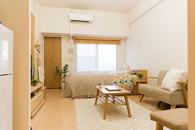 暮らしの拠点となる物件によっては、エアコン付き、クローゼット付きといった部屋もあります。部屋の状態や広さを確認した上で、必要になる家具、家電を準備してください。