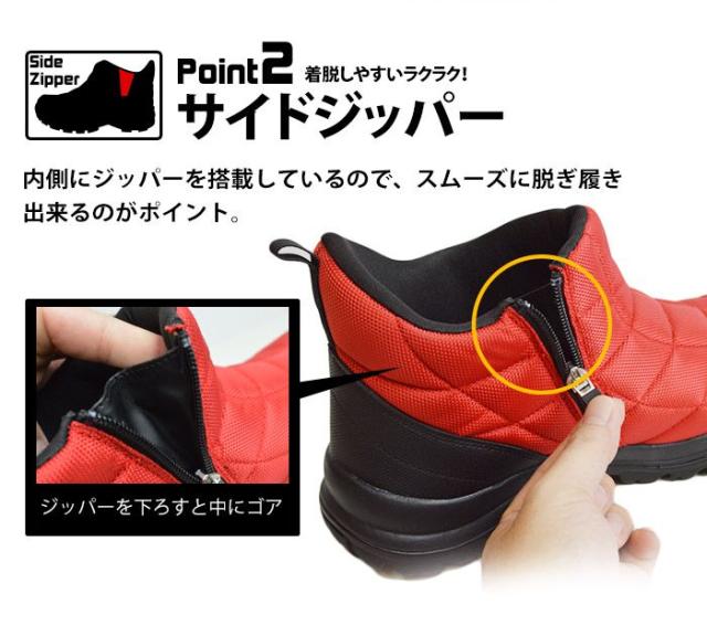 - 防寒性がある靴が欲しくて購入しました。 軽くて暖かいです。 ただ残念なのは靴の内側、かかと部分辺りに固いプラスチックのようなものがあって、歩いていると時々それが当たって痛いです。もともとの作りなのか、...