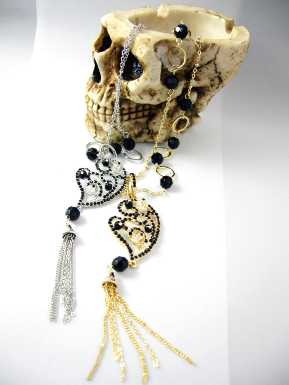 チェーン部分にもピュアブラックのボールビーズを使っているから、チェーンがチラ見えするだけでも、素敵におしゃれな雰囲気。