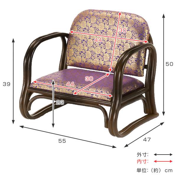 ラタンチェア 金襴座椅子 ロータイプ 座面高23cm ( 正座椅子 背もたれ付き イス チェア 座いす アジアン )