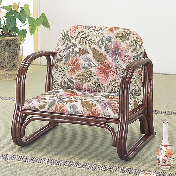 ラタンチェア ロータイプ 椅子 籐家具 座面高23cm ( 正座椅子 背もたれ付き 肘付き 肘掛 イス チェア 座いす アジアン )