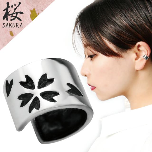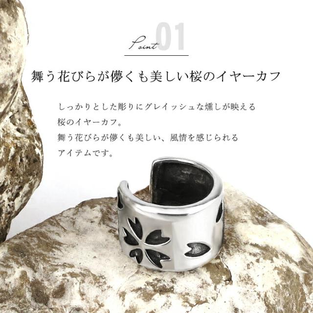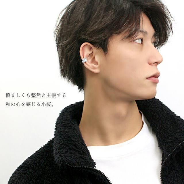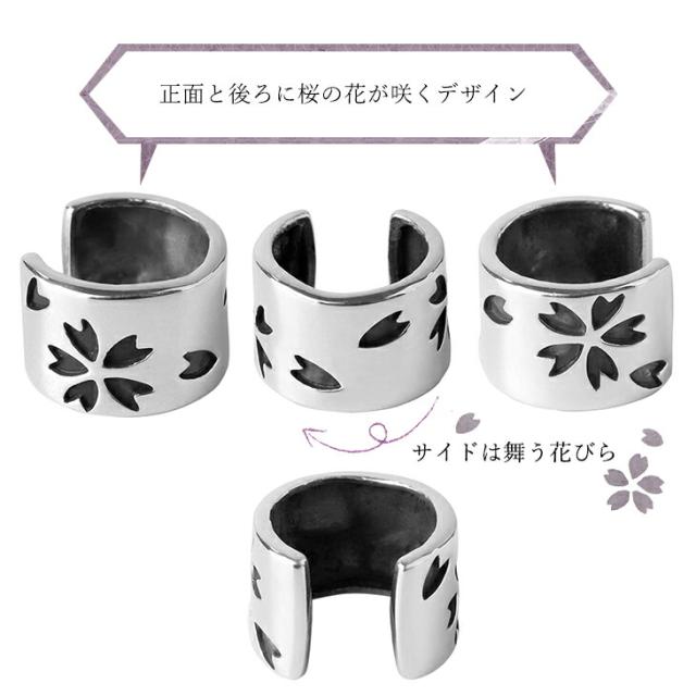 舞い散る 桜の花びら シルバー イヤーカフ 1P 片耳 シルバー925 ノンホールピアス イヤークリップ 鏡面 シンプル 桜 さくら サクラ 花びら 日本