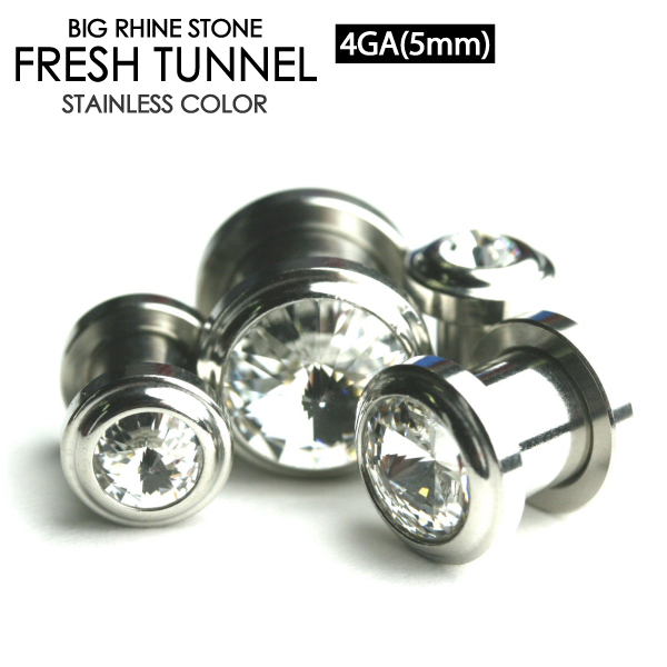 メール便 送料無料 フレッシュトンネル BIG ジュエル 4GA(5mm)サージカルステンレス316L【ボディーピアス ボディピアス】4ゲージ(5ミリ)┃
