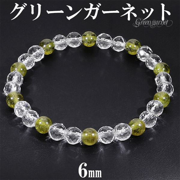グリーンガーネット カット 水晶 ブレスレット 6mm 17cm レディースM サイズ 1月 誕生石 天然石 パワーストーン ガーネット ガ-ネット 数珠ブレスレット