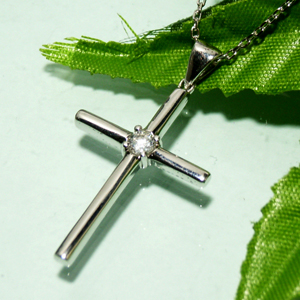 余分な装飾を一切省いた、シンプルなクロスの中央にジルコニアを留めたネックレスです。細身なシルエットですが、適度な大きさがあるので存在感はバッチリ!