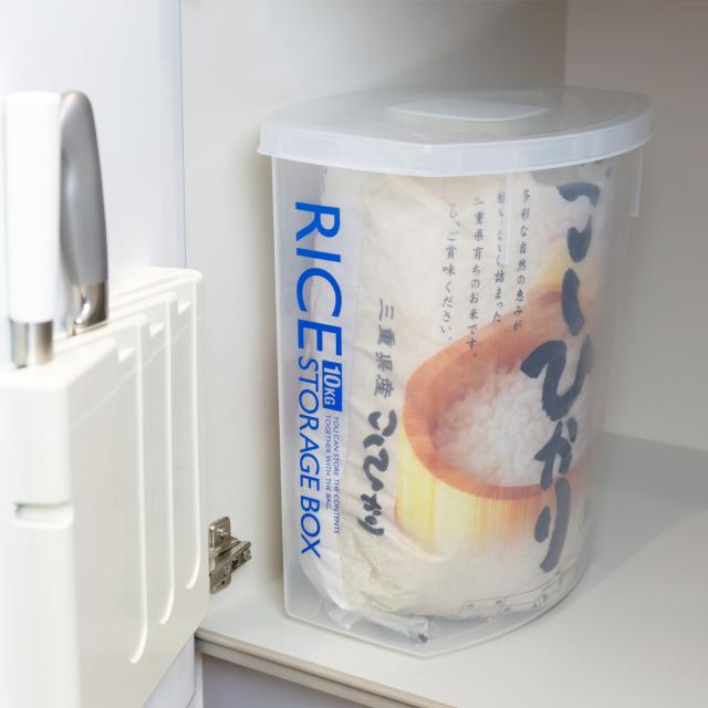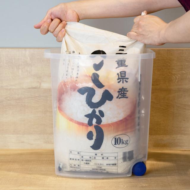 ●10kgの米袋を縦方向にそのまま入れて保存ができる米びつです。