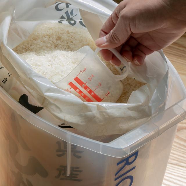 | 材質 | フタ・本体・防虫剤ケース・計量カップ:ポリプロピレン キャスター:ABS樹脂 |