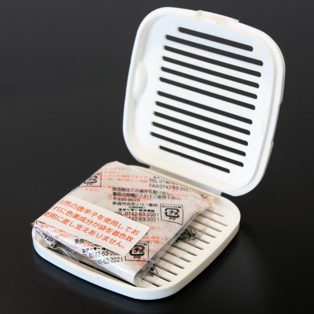 フタの裏側に防虫剤をセットできるケースが付いています。防虫剤の効果でイヤな害虫を防ぎます。