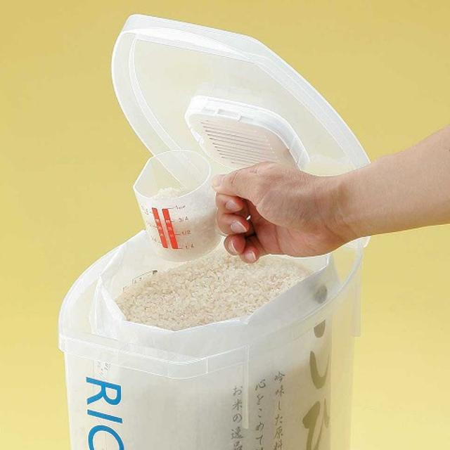 10kgの米袋を縦方向にそのまま収納・保存ができる米びつです。袋のまま収納できるので、移し替える手間が省けます。重いお米を米びつへ移し替える面倒も解決。お手入れもしやすいです。
