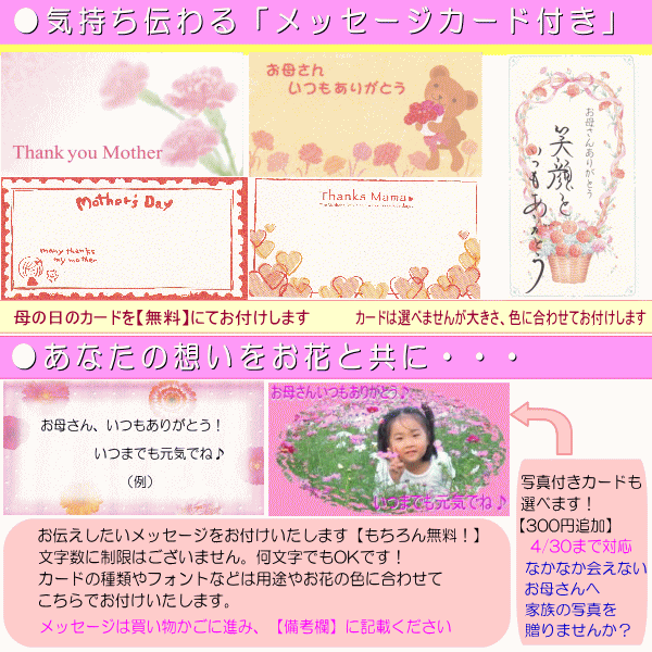 - 母の日にはやはり豪華なお花を贈らないとお祝いした気分にならないのでこちらで購入しました。丁寧な対応に感謝しています。