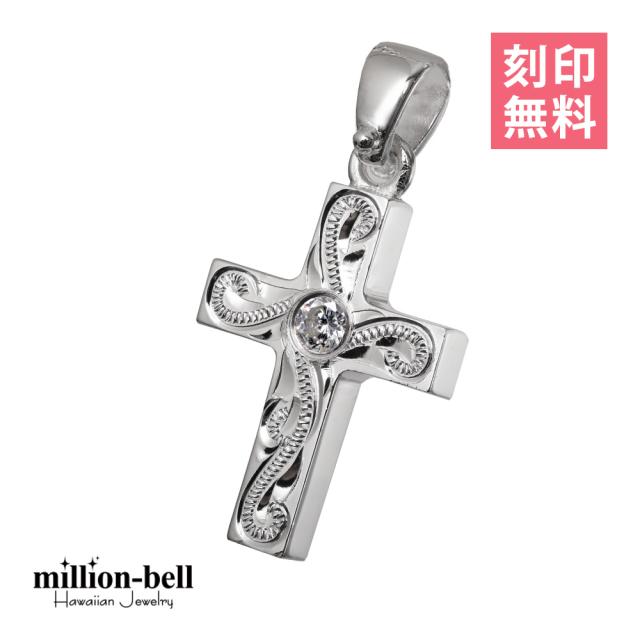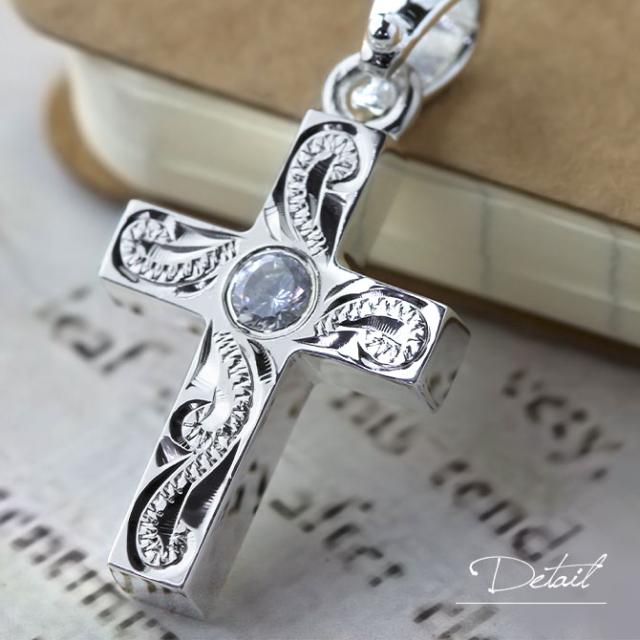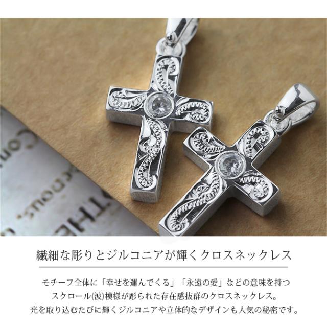 ハワイアンジュエリー シルバー ペンダント トップ 刻印 無料 ジルコニア クロス スクロール 十字架 シンプル シルバー925 ネックレス チェーン別売 ペンダントヘッド メンズ レディース 誕生日 プレゼント お正月 成人祝い 【品番:SP2870】