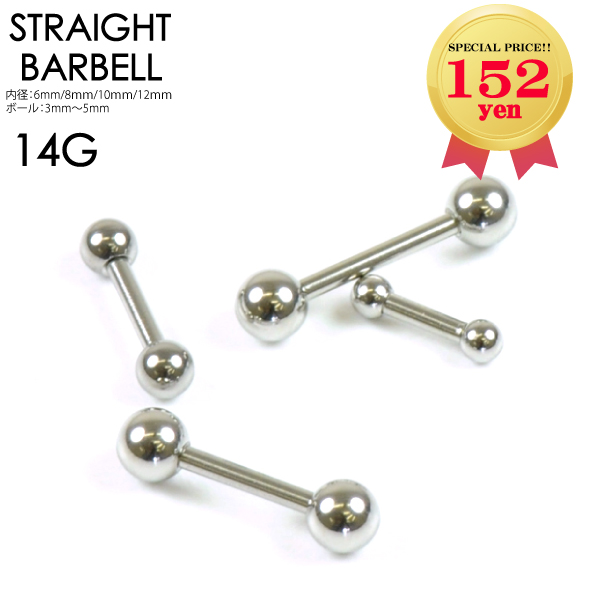 【メール便対応】ボディピアス ストレートバーベル 14GA(1.6mm) サージカルステンレス316L(医療用) ボール【軟骨 トラガス イヤーロブ 舌ピアス スタンダード ファーストピアス】【bp139】┃