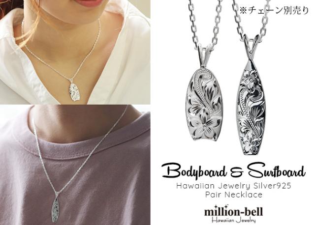 ハワイアンジュエリー シルバー ペアペンダントトップ 2個セット 刻印 無料 誕生石入れ可 サーフボード ボディーボード シルバー925 ネックレス チェーン別売 ペンダントヘッド カップル 夫婦 プレゼント ホワイトデー 卒業式 入学式 【品番:SP2512-SP2513P】