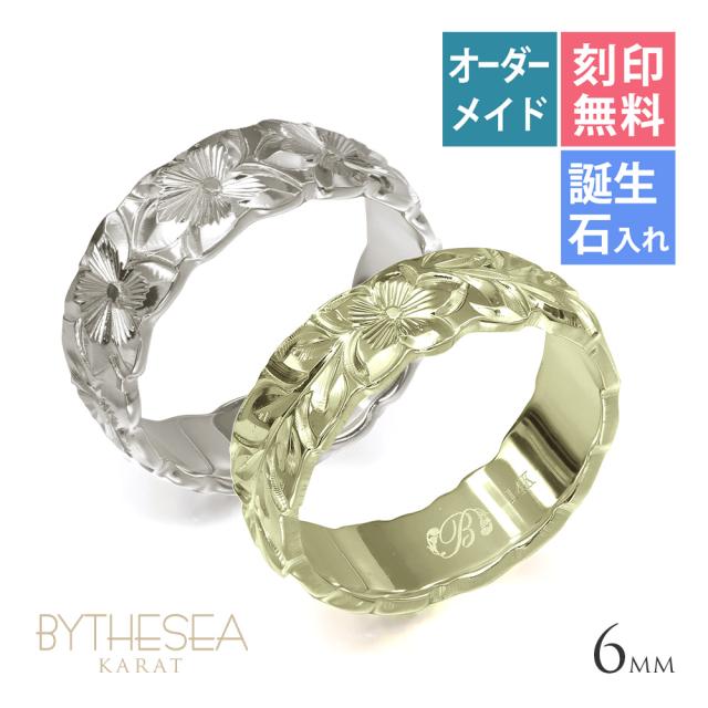 ハワイアンジュエリー リング 指輪 オーダーメイド オリジナル バレル 樽 6mm幅 刻印無料 名入れ無料 誕生石 レディース メンズ K14 14金 OEM-B6