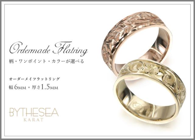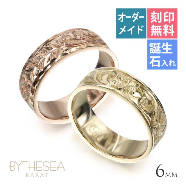 ハワイアンジュエリー リング 指輪 オーダーメイド オリジナル フラット 6mm幅 刻印無料 名入れ無料 誕生石 レディース メンズ K14 14金 OEM-F6