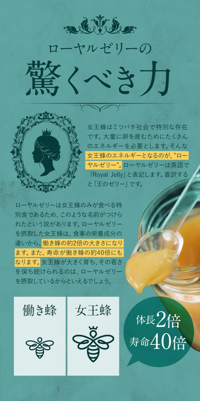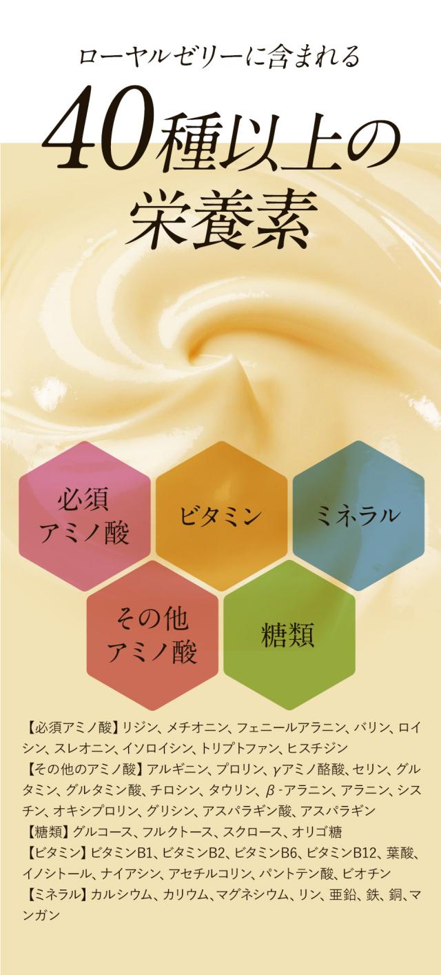 主要原料(1粒あたり):乾燥ローヤルゼリー末 130mg