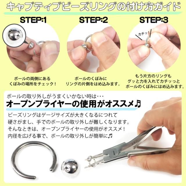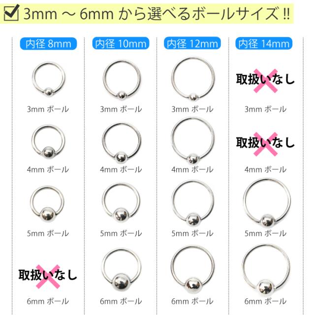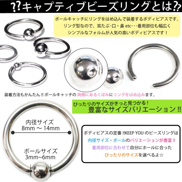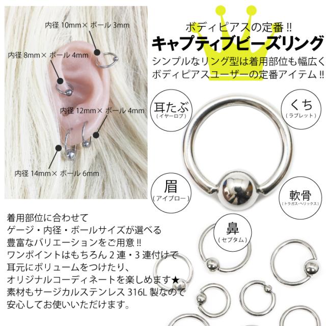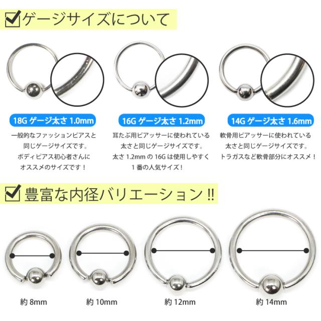 【メール便対応】キャプティブビーズリング 18G(1mm) 16G(1.2mm) 14G(1.6mm) サージカルステンレス316L(医療用) 軟骨ピアス トラガス イヤーロブ ヘリックス スタンダード【bp139】┃