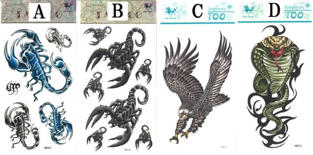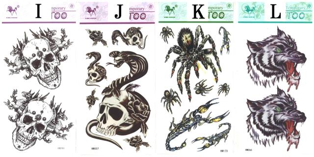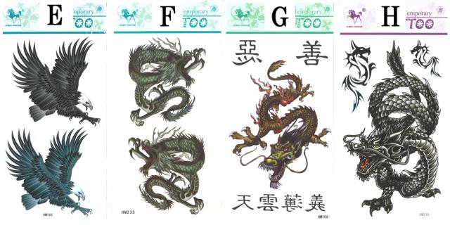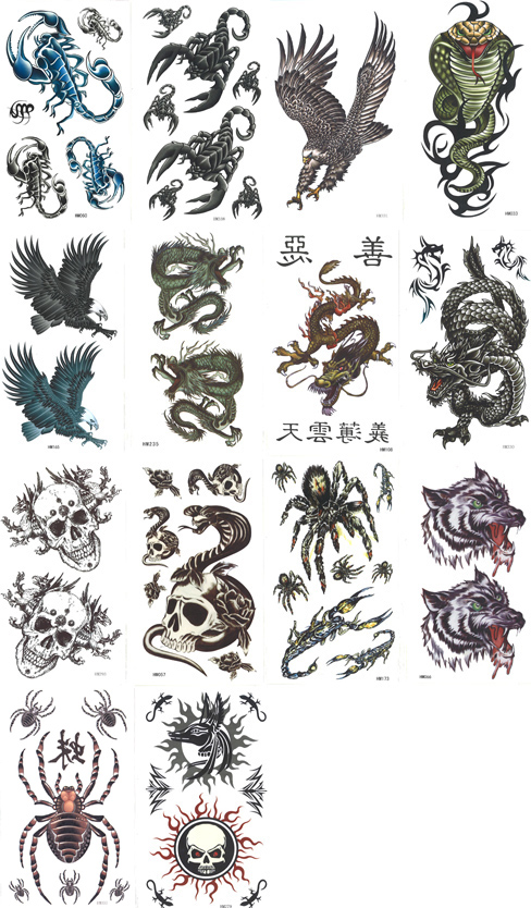 タトゥーシール 全14種 A〜N 蠍 スコーピオン 鷹 イーグル 龍 ドラゴン 髑髏 スカル ドクロ 狼 ウルフ 蜘蛛 スパイダー イベント 野外フェス等に ライブ パーティー デコレーション メイク 遊園地 テーマパーク ハロウィン 仮装 コスプレ tatoo