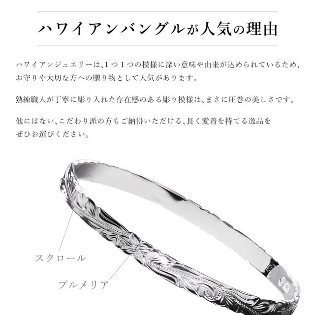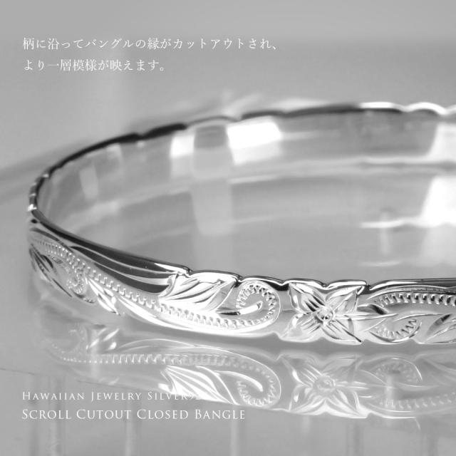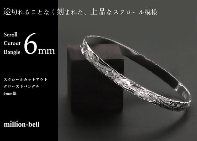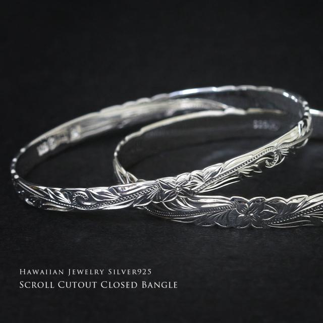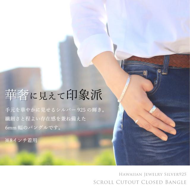 ハワイアンジュエリー バングル ハワイアンジュエリー ブレスレット 幅6mm 刻印 無料 サイズが選べる クローズバングル カットアウト スクロール シルバー925 太め 彼女 妻 女性 レディース 誕生日 プレゼント クリスマス 【品番:B1040-6】